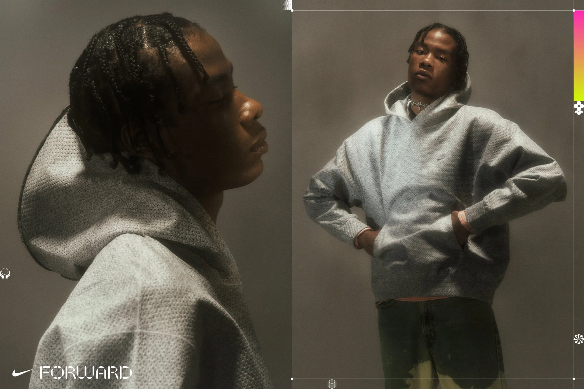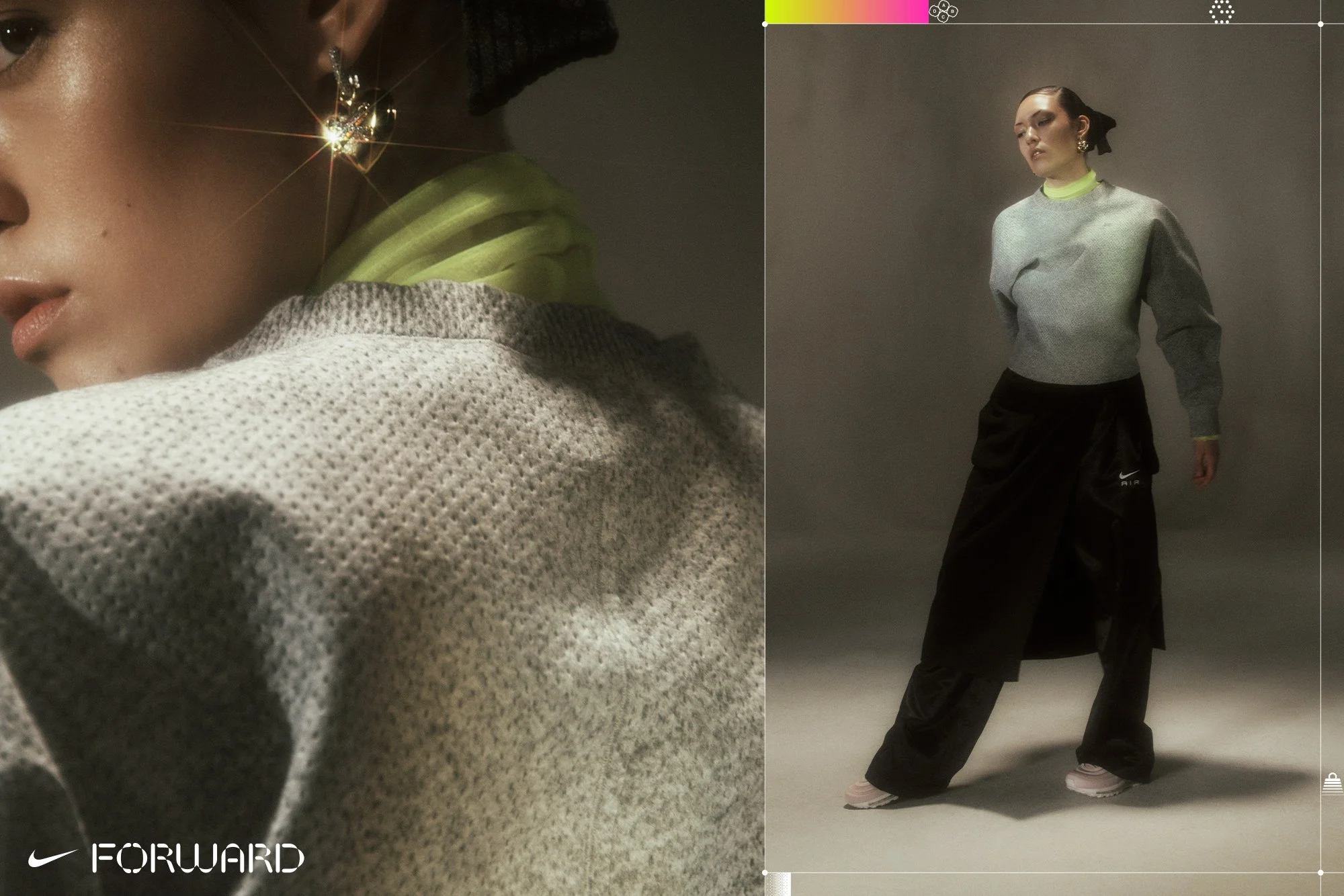Nike Forward is the company’s most important and complex material innovation since Dri-Fit. Made of super thin layers, the Forward material is neither a knit or a woven - instead, it’s a whole-punched, proprietary process using fibers from recycled materials. The campaign focused on the science, and also unique feeling of wearing Nike Forward. Assets were used to fuel Nike.com, flagship social channels, Nike Retail, and OOH installations.